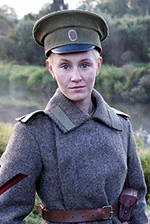Jag trivs efter en tag och upptäcker att jag behövde inte kamma dem. men skämt åtsidan detta var ingenting i jämförelse med träningen. vi fick två träningar en av den träningen som gs av värnpliktiga som vill stanna i den ryska elit förband en månad och sen en månad träning med första världs kriget vapen med några historiska grupper som skulle återskapa denna period. det var nästa tuffare än den första och många repetitioner av andra scenerna. det vara en lärorik erfarenhet och jag fick även orden läsa Eric maria Remarque på tyska och ryska . jag tog även sång lektioner. nadi är inte krigisk av sig själv och för mig var hon även lite mera ålderdomlig men hon blir som alla andra än försvar lösa soldat som måste slås. Hon söker blommor och det som hon gillar men hon har kommit i ett gemenskap och då tar hon det på allvar eftersom hon vet att det är frågan om att döda för att inte dö själv . Kvinnor förknippas med livet med att bli modern och det är strak i den ryska kulturer även idag och ännu mera då medan i vårt film skall dem bli soldater skall förlora den kvinnliga som symbolisera av håret (observera även dem som lämnar visar inte att dem har rakat hår) och deras liv för att delta i en krig en krig som ingen av dem gillar. En krig i vilken det finns död som är även smutsig genom gas fiende och lera . det var mycket skitig. Det är inte en heroisk eller spännande krig men en desperat sådan och vad vill ville visa är det mest smutsiga och brutala i ett krig i vilken det finns bara en förlorare mänskligheten. till slut blir dem alla inklusive nadi starka soldater mord 'maskiner i ett brutal företag . jag tycker att ofta när jag ser filmen igen och jämför det med många och även mycket bra Hollywood filmer att jag såg inte så mycket kvinnan men mera soldaten den som skall döda för att inte dö själv. detta är enligt mig films styrkan och jag är tacksamt att ha varit med i den trots kyla och det smutsiga.