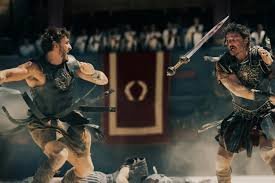 Few movies has been so important like Ridley Scott Gladiator and now the same director come with a continuation that isn’t a remake even if it use footage from the impressive titles of the same work but even from an other Scott’s features “Kingdom of heaven” in the impressive battle for the conquest of a Numina Arabic town. Here we will see known the two role that take that rather difficult heritage of Russell Crowe Hanno by the great hero Paul Mescal and especially Accanius by Pedro Pascal. Both take some other aspect of the character that Maximus so the link withy the earth and a certain amount of democracy that is also appearing from Pascal character . Democracy is a difficult question and Gladiator II is mostly a action movie and one can see it in the use of editing that is taken as it is rather violent way by Claire Simpson and the use of the elements fire for Hanno air for his beautiful wife Arishat well portrait by Guval Gonen , muddy for the antagonist and water for Lucilla that is for me connie Nilsen best role ever. This wonderful Danish actress with a touch of Greta Garbo has been deeply under rated and we can watch her in several role when she interact with the two corrupted imperator and with the villain but also a beloved partner to Arcadius and a difficult relationship with Hanno. In a way the scene works much bather than the one that we had in Gladiator and there is a duality that is shown by Nielsen and by Scott excellent instruction in her figure a mother and an empress and this is also shown by the DP John Mathieson. The main problem is that we don’t have any interest scene between Lucilla and the senator Gracco that is play buy Derk Jacobi but his part seam that of a figurant nothing more. The emperors are the most astonish character I all Ridley Scot’s movie career for the way how they are presented . They are very expressionist like some character of the German movie Caligari for example (I will soon dedicate an other English review on this movie) that are present like the soul at work. This is particular present in the figure of Caracalla paly by Fred Hechinger but in rather clownish way but with Galeta really well play by Joseph Quinn that is a much bather actor and this kind of working is bather and show a man that has the same idea of Rome glory even in a decanter way. The character that is parallel is the notably and deeply corrupt Thenax play by Tim McInnerny. He is also near Marcius portrait in a very good way by Danzel Washington. We cannot find him like purely evil and we can easily understand why he act as he act and the way of revenge against marc Aurelio-. The battle scenes are like the duel highly spectacular and what I like is the use of the baboon. They were actually find in Pompei and . An other quality is the character of Rami play by the Swedish Eritrean actor Alexander Karim a former gladiator that is known to be a doctor. He is the only of the “gladiator” that have a more psychological connection with Hanno a really good movie.